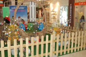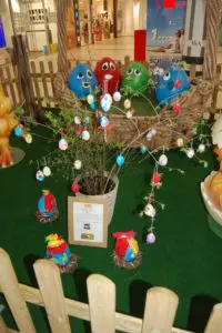 Die Osterfee & der Osterhase unterwegs im Atrium.